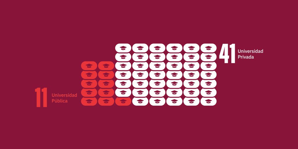 Los datos muestran que la Corte ha estado conformada mayoritariamente por personas egresadas de universidades privadas, con un peso particularmente alto de instituciones con trayectorias históricas en la formación de élites jurídicas. Estas cinco instituciones concentran el 75% de los magistrados titulares:
